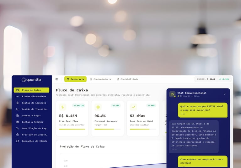 A Quanttix é uma plataforma de inteligência financeira com IA criada especificamente para empresas em crescimento. Nascemos da observação de um problema crítico: enquanto grandes corporações investem milhões em sistemas de Business Intelligence e FP&A, as médias empresas permanecem presas a planilhas manuais, processos lentos e decisões baseadas em dados desatualizados.