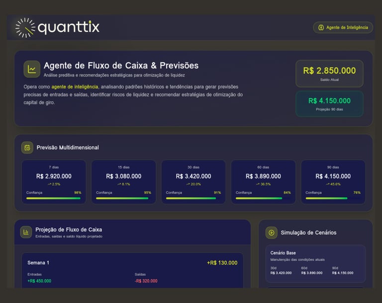 A Quanttix nos salvou de uma crise de liquidez que não víamos vindo. A plataforma alertou com 45 dias de antecedência, dando-nos tempo para agir. Hoje, minha equipe gasta 80% menos tempo em tarefas operacionais e muito mais em análises estratégicas. O ROI foi imediato