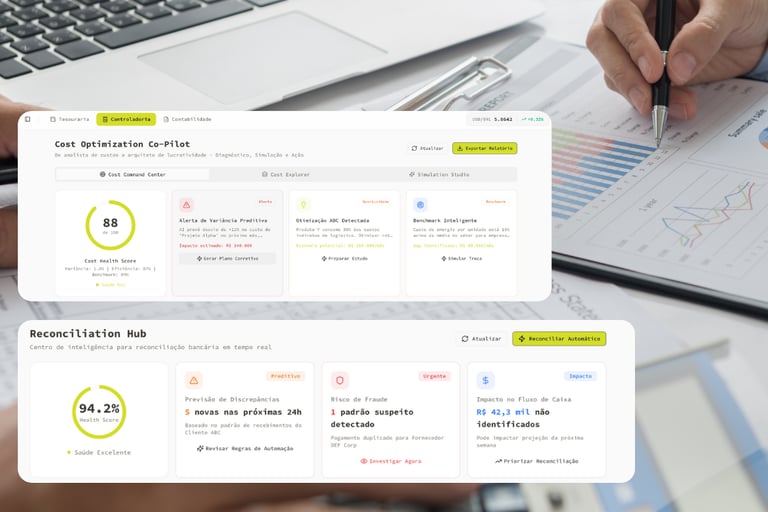 • Prevemos o futuro com IA - Nossa inteligência artificial analisa dados históricos e fornece previsões de fluxo de caixa com 98% de acurácia, permitindo que CFOs e CEOs tomem decisões baseadas no futuro, não apenas no passado.